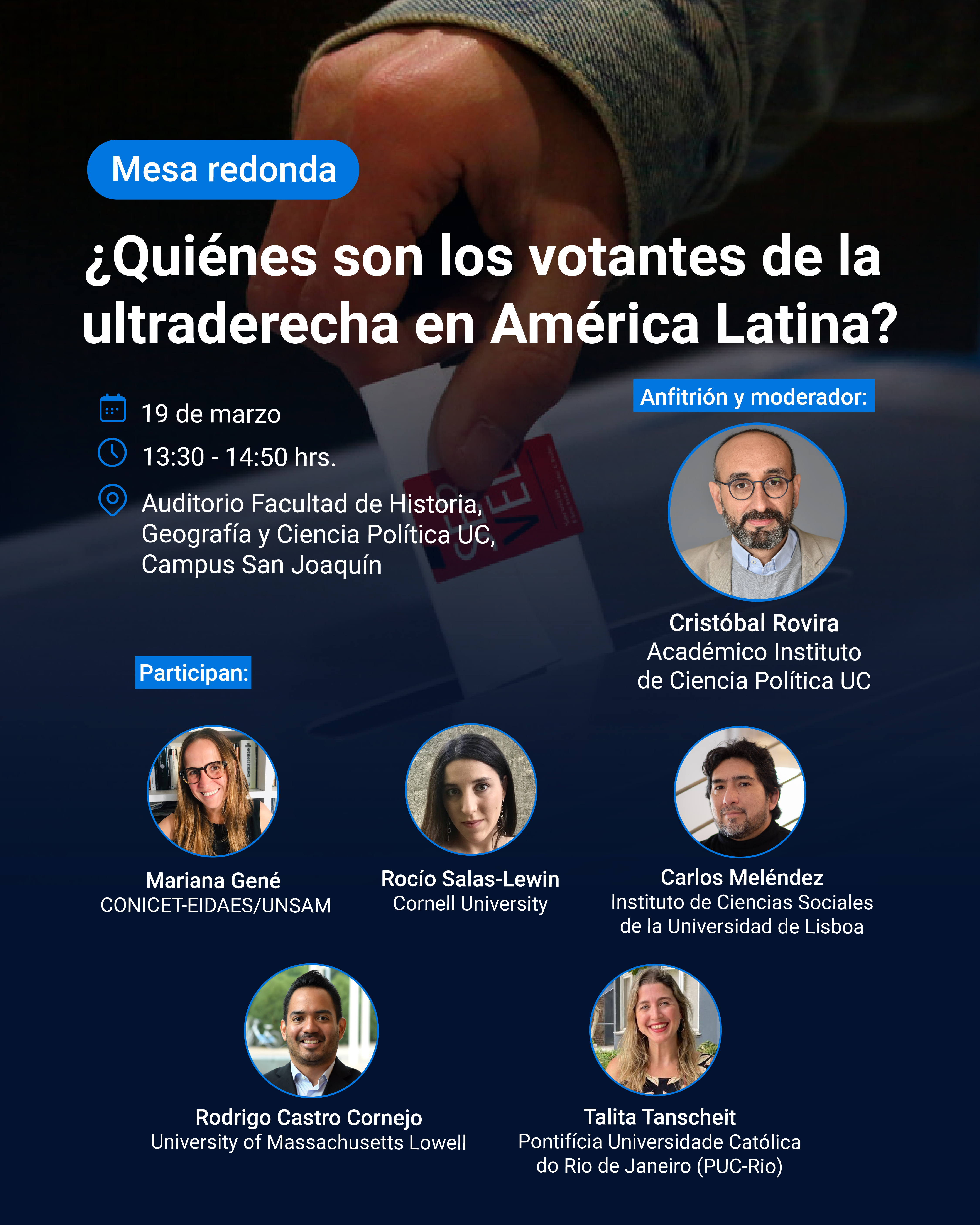 Auditorio Facultad de Historia, Geografía y Ciencia Política, Pontificia Universidad Católica de Chile, Campus San Joaquín (Av. Vicuña Mackenna 4860, Macul - Metro San Joaquín)